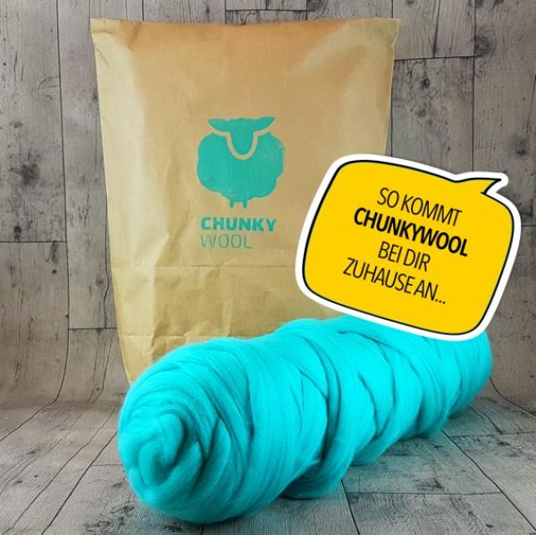 Deine CHUNKYwool Premium wird per Hand abgewogen und mit Liebe verpackt. Daher kann es sein, dass Deine bestellte Wolle um ca. +/- 2% im Gewicht abweicht.